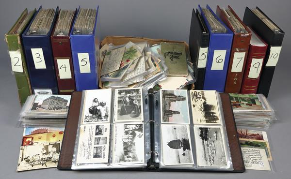 Worldwide, Impressive Picture Postcard Collection, including US, ca. 1900-70, a massive collection of postcards (well over 2,000) encompassing an entire box and 10 full binders; collection includes some highly desirable item such as: an entire binder of over 200 early Asia postcards, dozens of train and train station real photo postcards, disaster real photo postcards, a binder of over 200 beautiful early Thanksgiving postcards, and hundreds upon hundreds of early postcards relating to (but not limited to): expositions, holidays, humor, Native Americans, World War I, World War II, the Mexican Revolution, advertising, celebrities, sports, politics, and more; the majority of this collection is items from 1900-1950, but some later items exist in small numbers; a superb collection worthy of in-person inspection. Shipping charges apply - weight 71.8 lbs. (PDF for this Lot) (PDF2 for this Lot) (Image)