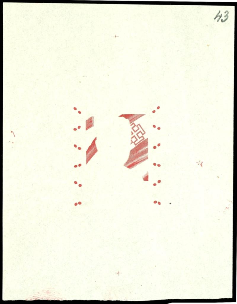 1934, 10 Schilling Dollfuß, Phasendruck "43" nur von Fahne und Lorbeer in lilakarmin, ungezähnter Einzelabzug im Blockformat ca. 80 x 103 mm auf ungummiertem Papier, tadellose Erhaltung, Fotoattest Rüdiger Soecknick BPP (2013) "echt und einwandfrei" (Image 1)(Image)