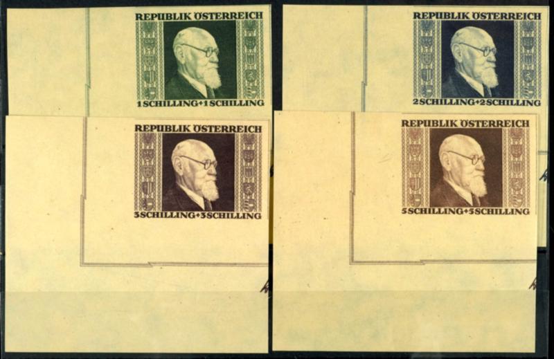 1946, 1 Shilling to 5 Shilling "Karl Renner", cut, sheetlet set of all four values, perfectly mint never hinged, photo expertize Soecknick BPP: "genuine and immaculate", Michel 2.600.- (772/75B) Certificate