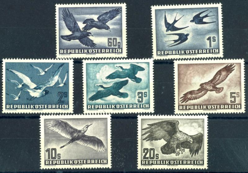60 Groschen to 20 Shilling, birds, 7 values complete mint never hinged, sound, ANK number 967 / 73, 420.- (ex955/987) 60 Groschen bis 20 Schilling, Vögel, 7 Werte komplett postfrisch, tadellos, ANK Nr. 967/73, 420.- (Image)