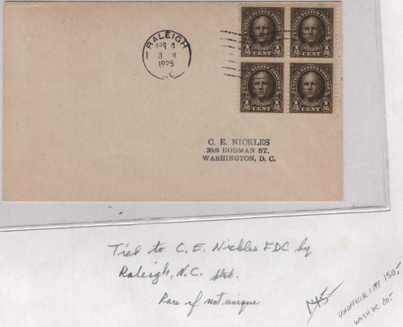 Group (16) FDC 1922-30 in glassines/ sleeves incl #551 Blk (2) New Haven CT, 551 Blk Newark NJ, 551 Blk Raleigh NC, 553 Blk/8 + U481 on registered cover, 553+582+598, 553+582+598+U81, 554 pair, 557, 559, 588, 600 pair, 603 UA, 604 pair, 623 Blk, 684+686 w/ Roessler cachet; some are to/from Worden, Nickles or Colman; most w/o cachet, addr; CV abt $1,700; gen VF (Image)