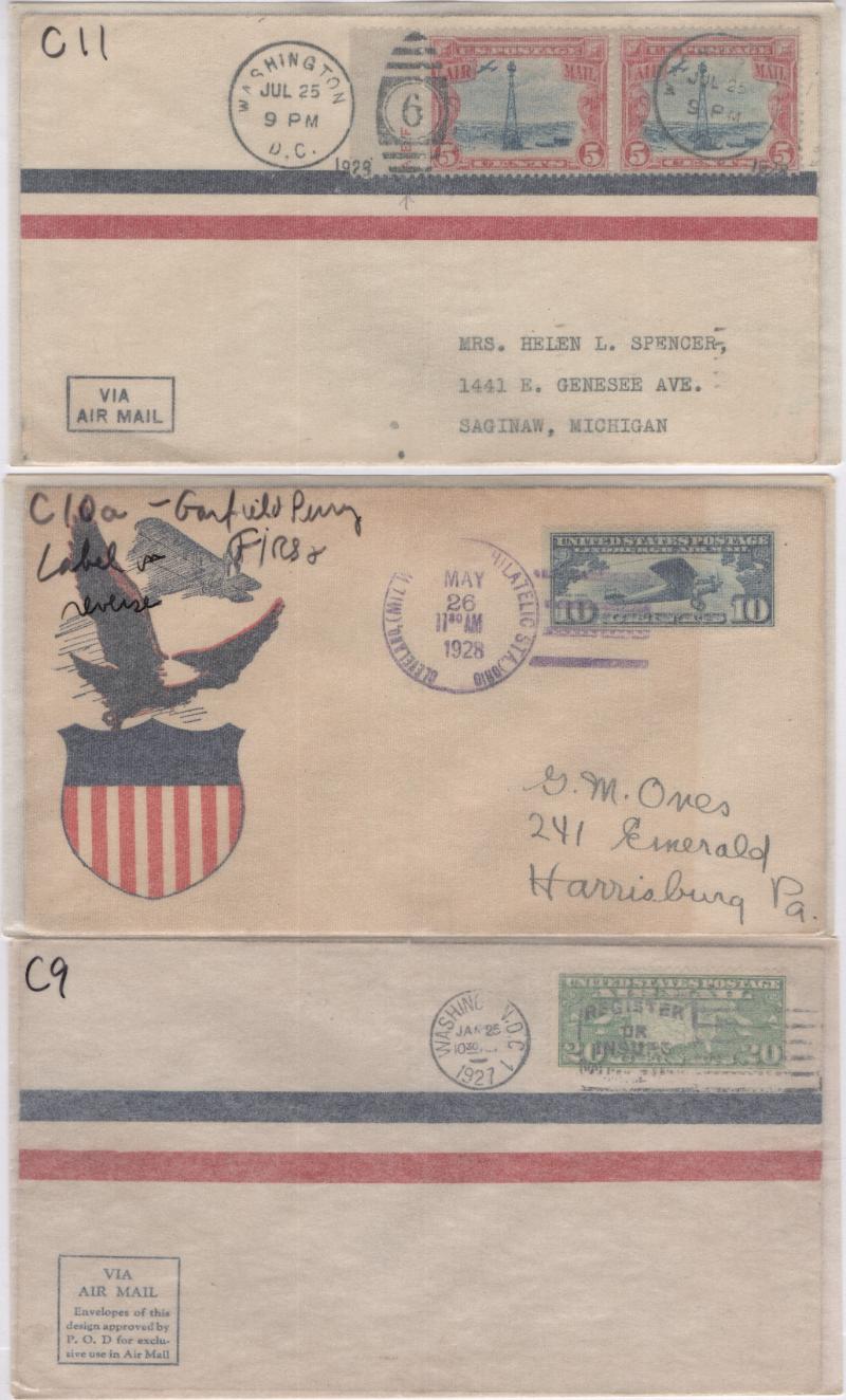 BACK OF THE BOOK Small Accum (58), some dup 1925-44 mainly addr & uncacheted incl C7-9 (3), C10 (6), C10a single from pane, C11, C12 (5), C17 (2), C19 Baltimore (2), C20-22, E13, E14, QE1-4, U381, UC10 (2) & others, gen F-VF (Image)