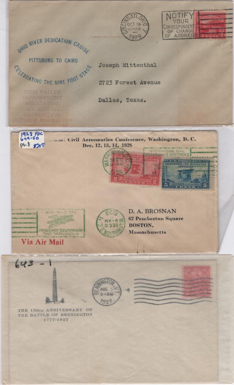 Accum abt (700) mostly early commem FDC from 1926-32 btw #629//725 w/ dup, mainly sleeved or in glassines, mostly addr, few cacheted incl many diff alternative first day cities to Washington incl 645 (Cleveland ) also 649-50, 704-15 (3 uncacheted set) & others, cond varies gen F-VF (Image)
