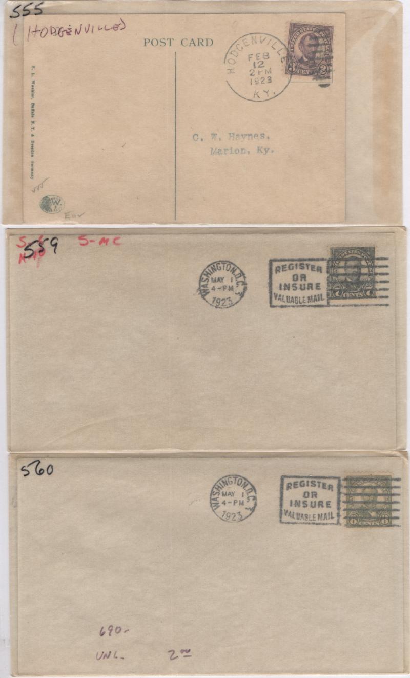 Better Accum abt (1100) incl #620-21, 628, 647-48, 671, 785-94 (2), 834, 855 (6), 906 (2), 909-20 (Mellone 909-61), 1053, 1295 (2), 1909 (2), 1909a, 2252 (12) diff hand painted, 2394 Collins, 2542 (3), C16, C20 (5), E16, QE1; while some AM, AC or FW, mostly better, some earlies uncacheted; few flap marks but gen F-VF (Image)