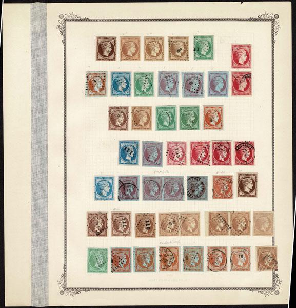 GREECE: 1861 to 1900 Excellent Collection of 200 stamps plus 2 covers, on quadrille pages. Very nice Hermes heads with full margins, duplicates, town cancels and some varieties, later, surcharges, many better. On the whole, generally very fine with quite a few identified. Ex Betrix