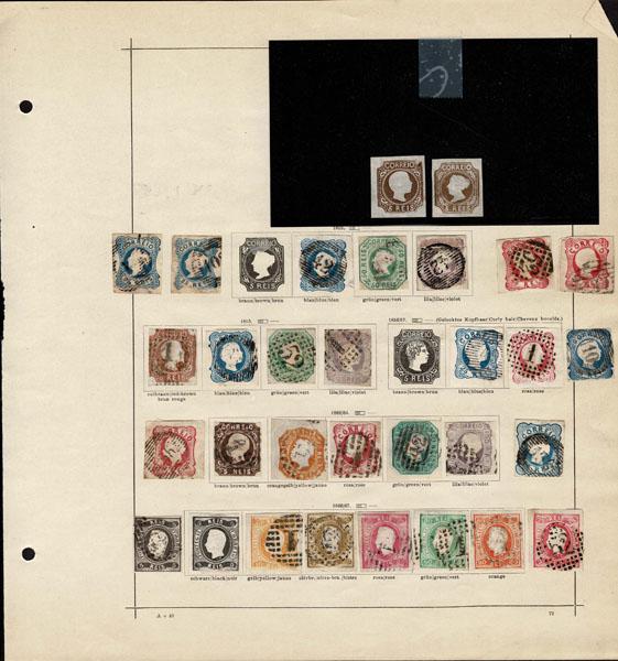 PORTUGAL & COLONIES; 1853 to 1910 Collection of many hundred mostly used stamps, on old-time Schaubek album pages, quite a few sets with higher catalogue values, some stuck down on old-time hinges ( should not affect used stamps) Conditions mixed, will be worth the effort to work the collection.
