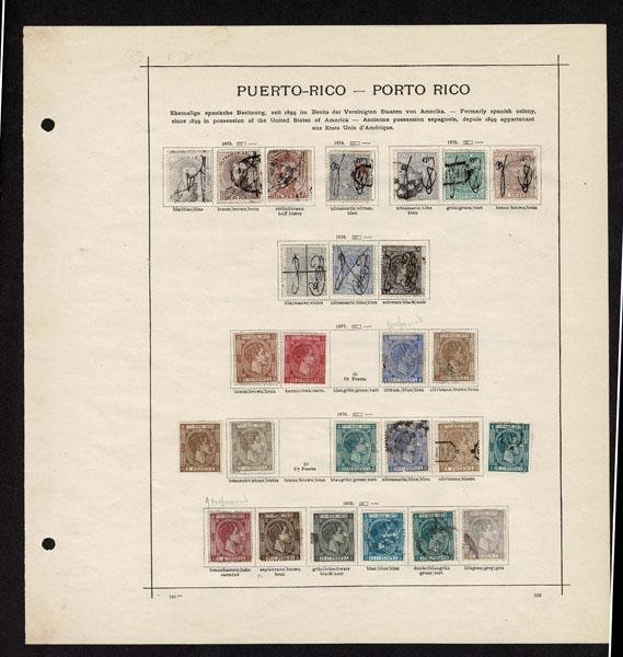 PUERTO RICO & EARLY CUBA 1855 to 1910, 2 Collections of a few hundred mostly used stamps on old-time Schaubek album pages, quite a few short and complete sets, interesting cancels. Some stuck down by old time hinges (should not affect used stamps) condition mixed, good lot.