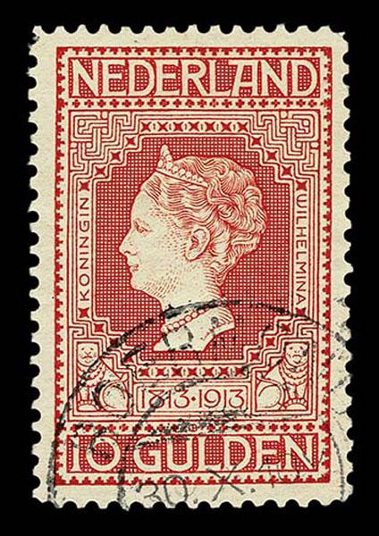 NETHERLANDS: 1905 , 1913, 10g orange and 10g red, each lightly cancelled, very fine copies of these popular stamps. (Scott 86,101 $1,400 ) Sale and Lot Updates Scott $1,400 (Image)