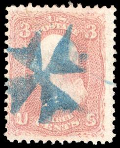Maltese Cross. Fancy blue cancel (S-E CR-M 6) on 1861 3¢ rose, Very Fine and attractive,ex-Saadi. Estimate; $75 - 100. US$75-100 (Image)