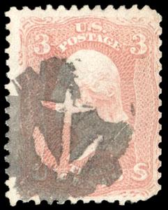 Negative Anchor. Bold strike (S-E PO-An 29a) on 1861 3¢ rose (slightly rounded corner), Very Fine,ex-Saadi. Estimate; $75 - 100. US$75-100 (Image)