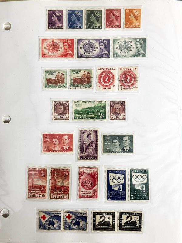Australia, 1952-89, a beautiful collection of Queen Elizabeth II issues, complete for the period, mostly mint (there are a few used here and there in addition to the mint), in mounts on blank pages, including all the key definitive sets, commemoratives galore, souvenir sheets and some varieties. In excellent condition throughout, spot check shows all o.g., never hinged, generally Fine to Very Fine. A small sampling has been imaged. Shipping weight 2 lbs / 0.9 kilos. Scott $2,050. Estimate $200 - 300. View a PDF of images for this lot Scott $2,050 Suggested Bid $200-300 (Image)