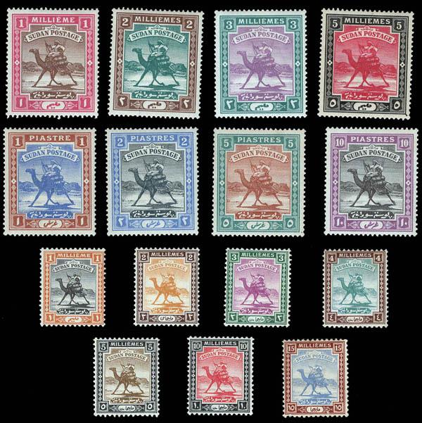 Sudan, 1941, Camel and Postrider, 1m to 20p complete (Scott 63-78), set of 15, o.g., never hinged, Fine to Very Fine. Scott $275. Estimate $75 - 100. Scott $275 Suggested Bid $75-100 (Image)