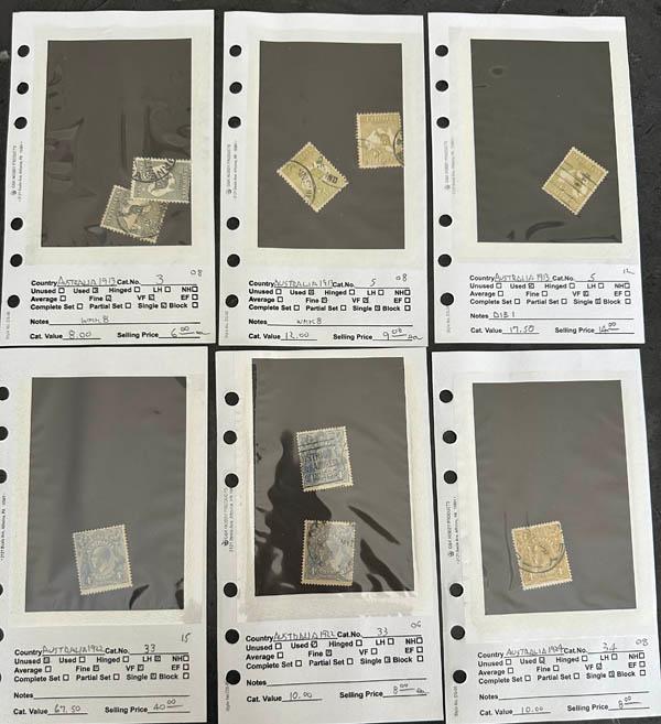 Australia and New Zealand, 1882-2008, a dealer's stock of mint and used, housed in 3 small, 2 medium and one large three-ring binders, and also includes some New South Wales, Queensland, Tasmania, N.W. Pacific Island and Antarctic Territory; the New Zealand includes some Cook Islands, Cocos Islands, Penrhyn Island, Ross Dependency and Samoa; many imaged on the website, Fine to Very Fine. Scott $3,918. Estimate $300 - 400. View a PDF of images for this lot Scott $3,918 Suggested Bid $300-400 (Image)