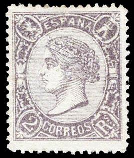 Spain, 1865, Isabella II, 2r violet (Scott 79. Edifil 79), o.g., hinged, Fine to Very Fine. Scott $1,900. Estimate $200 - 300. Scott $1,900 Suggested Bid $200-300 (Image)