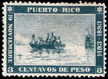 Spanish Colonies: Puerto Rico, 1893, Landing of Columbus, 3c green (Scott 133), o.g., hinged; some toning plus a small thin spot and some black paper adhering to the reverse, still Fine to Very Fine, with 1976 P.F. certificate. Scott $350. Estimate $80 - 120. Scott $350 Suggested Bid $80-120 (Image)