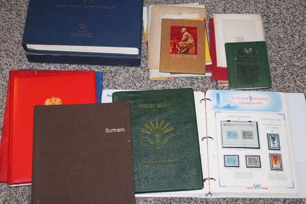 Worldwide, 1951-1980's, a large miscellany, mostly mint, including a mint collection of early U.N. in a White Ace album (including the #38 souvenir sheet); official presentation folders from Austria and Libya; new issue folders from New Zealand and the USSR; an album of recent Surinam; a presentation album of UPU Centenary issues; also a small folder of U.S. plate blocks and used. Useful additions to a worldwide collection. Shipping weight 20 lbs / 9.1 kilos (a large box). Estimate $200 - 300. Suggested Bid $200-300 (Image)