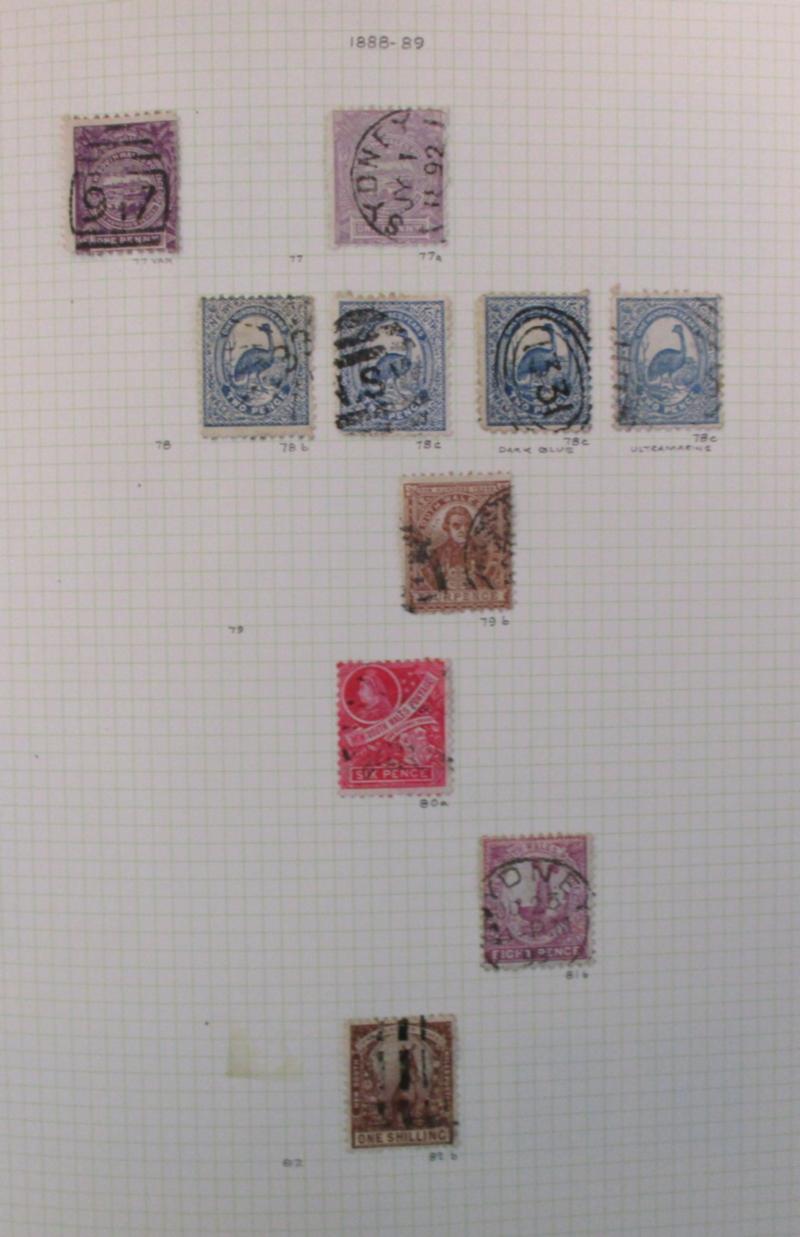 Australia and States Collection in Large Scott Binder to 1990s - Several 100 stamps neatly mounted to Scott Specialty and quadrille pages. Starts with a nice selection of around 100 stamps from the States and then mostly common used stamps with an occasional nugget, and a few covers in the mix. All neatly identified with small pencil marks beneath the stamps. Some back of book also includes some postal stationery, Papua New Guinea, Hutt River Province Principality stamps Binder in good condition and stamps mostly fine or better. (Est $175-250) (Image)