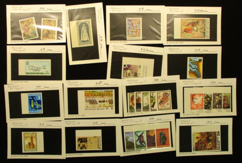 Belgium Group of Modern Imperfs on Dealer Cards - 48 dealer cards holding singles and sets, all imperforate issued between 1967-2003 with values to €65. Few semi-postals also included. MNH, F-VF or better. (COB €1100) (Image)