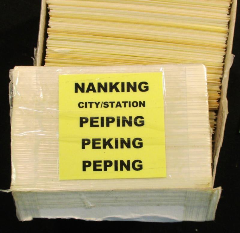 China 1930's Sun Yat-sen Cancel Collection - Between 200-250 small glassines holding 1930's Dr. Sun Yat-sen issues (Scott type A37 design), with town, date, and other info neatly typed on insert on which the stamp is mounted to. Many small towns here which could be basis for expansion. Excellent quality and strikes throughout! (Est $200-300) (Image)
