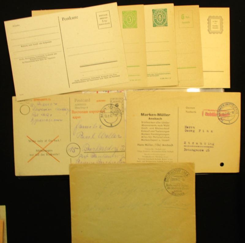 Germany Group of Postage Paid Cards and Envelopes - 16 "Gebühr Bezahlt" (Postage Paid) cards and covers, 1945-46, Includes 6 unused, 2 used postal cards, and 8 covers. Generally fine or better. (Est $75-100) (Image)