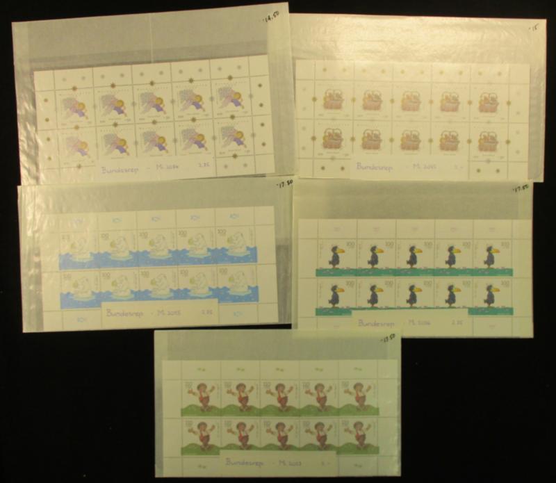 Germany Modern MNH Sheetlets and Souvenir Sheets - About 70 different sheetlets of 10 and souvenir sheets (x10) from years 1996-2000. Includes semi-postals also. Great lot for lists. MNH F-VF. (SCV $1179) (Image)