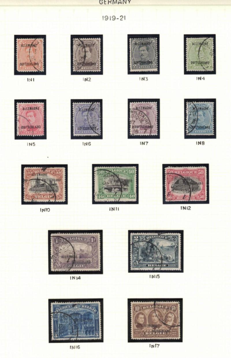 German Under Belgian Occupation Complete Collection - Mixed mint and used complete collection mounted on quadrille pages. Scott 1N1-17 is used except for 1N3 MH. Scott 1N18-24, 1N25-41, 1N42-58, and dues are all MH. Generally fine or better. Nice lot! (SCV $600) (Image)