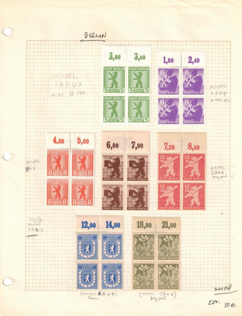 Germany Allied Occupation - Russian Zone Collection - Berlin, East /West Saxony, and Thuringen Mint blocks of 4 and about 100 stamps, mint and used. The best is West Saxony mint se-tenent pairs from booklet panes. Much is Michel identified. Generally fine or better, take a look! (2014 Michel €442) (Est $100-150) (Image)