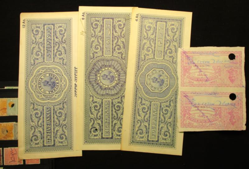 British India, Indian States, Pakistan Non-Scott Lot - 550+ non-Scott listed revenue, telegraph, charity, postal service, etc. stamps and documents. Stamp neatly presented on stock pages. Lots here to peruse in mostly fine or better condition. (Est $80-100) (Image)