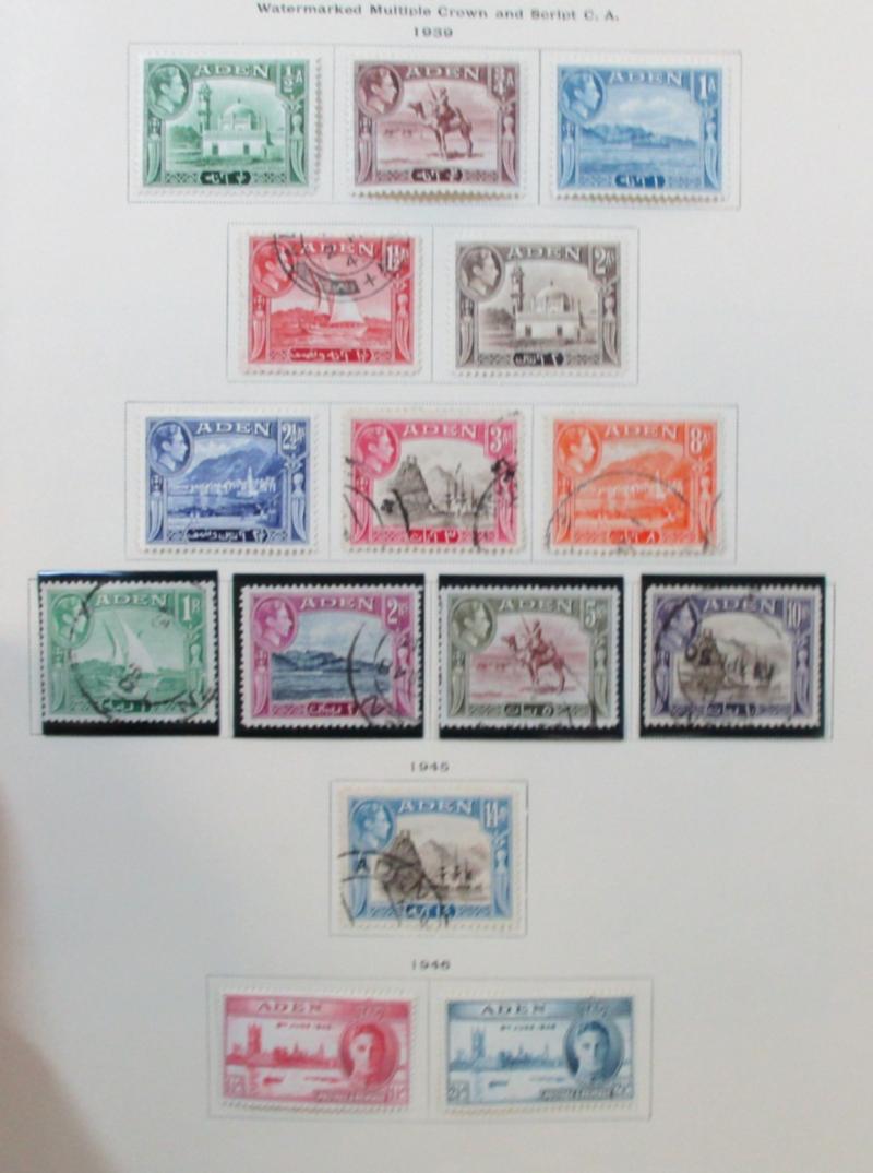 Aden Collection on Scott Pages - Complete collection missing just the Dhow set (Scott 1-12). An extra page was added for some collector used and color varieties. Mostly mint and generally F-VF. (SCV $635) (Image)