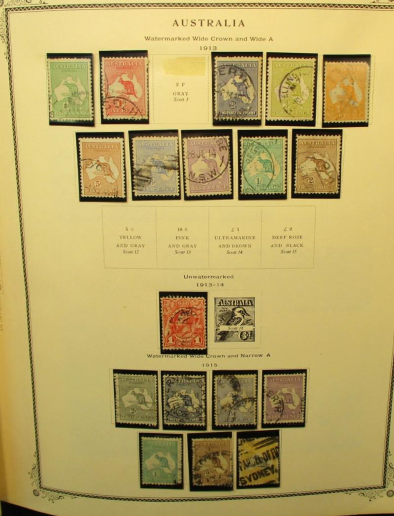 Australia Collection in Scott Specialty Album to 1990's - Nice collection with strength in the early years where previous owner added pages for shades, varieties, plating, etc. Spotted Roos to the 10/- value (used), a nice group of dues, a few pages of perf-ins, and some AAT. Take a look! Generally fine or better throughout. (Est $1000-1200) (Image)