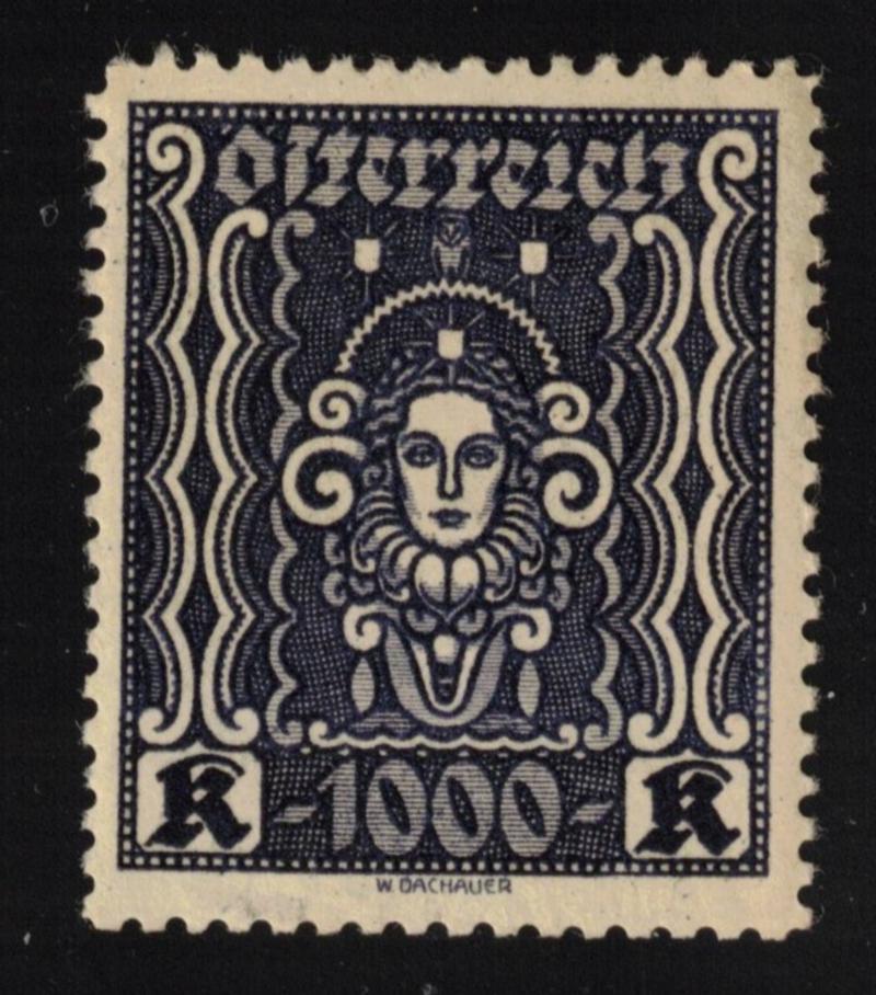 Austria Scott 294a LH F-VF, 1000Kr Value Perf 11½ - Perforation variety, MLH, F-VF. (SCV $240) (Image)