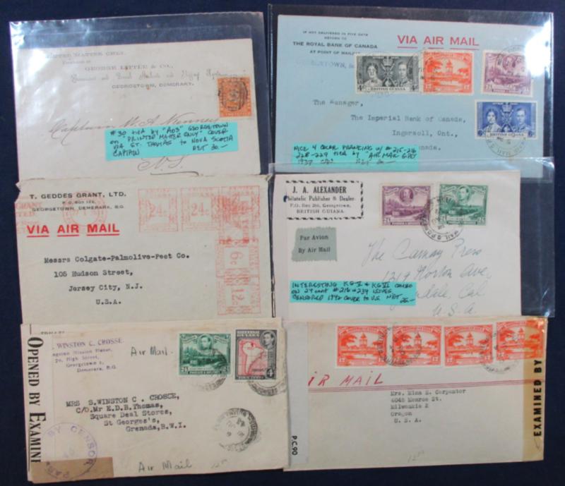 British Guiana Cover Group - 28 covers includes a nice selection of censored covers, postal stationery, multiple frankings, meter, a few modern aerograms, etc. Nice group for retail. (Est $150-200) (Image)