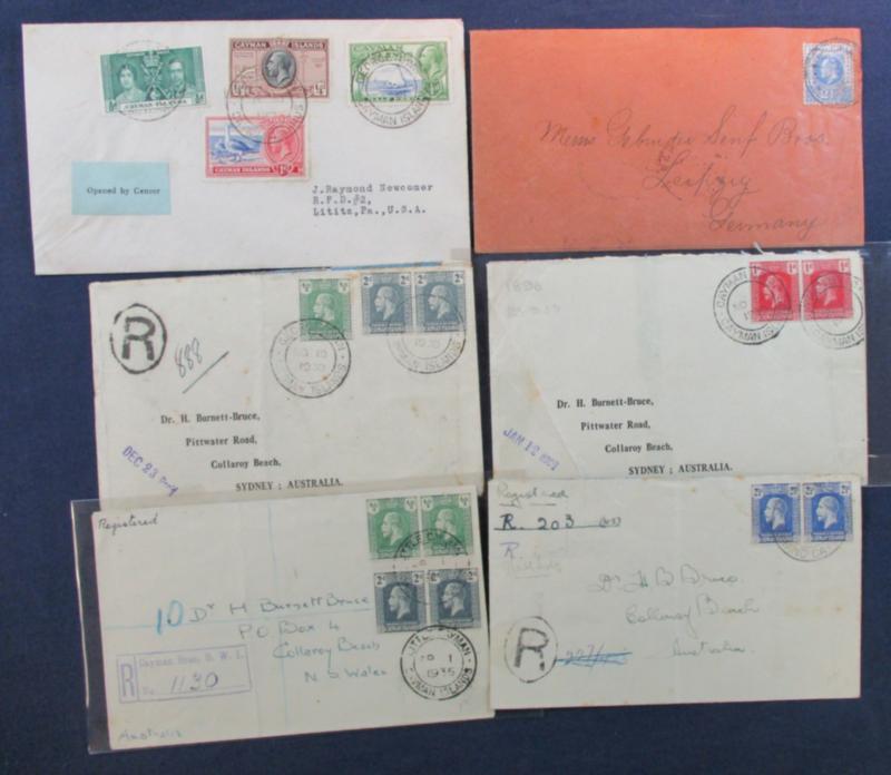 Cayman Islands Cover/Card Group - 11 covers/cards, 1900-1950s, includes 6 registered mail and 3 WW2 censored covers. Clean group for retail. (Est $100-150) (Image)