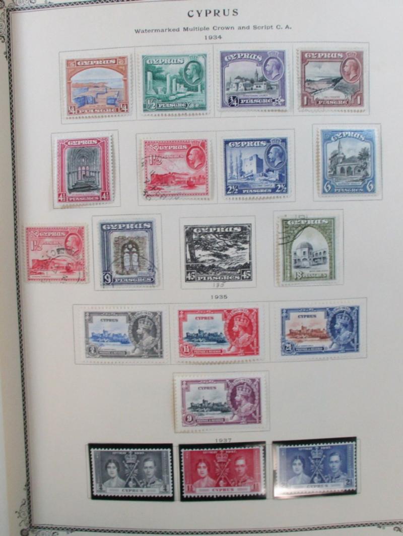 Cyprus Collection on Scott Specialty Pages - Clean hinge-mounted or mounted mint/used collection covering 1903 KEVII to 1989. Several in the $20+ range includes unused Scott 136-9, 143-155, 183-96, 206-18, used Scott 122, 158-9, 226a, and mixed mint/used Scott 168-82. High level of completion post-1938. Owner's SCV $2000. Worthy of continuation. Few earlies with revenue cancels Generally F-VF. (Est $350-450) (Image)