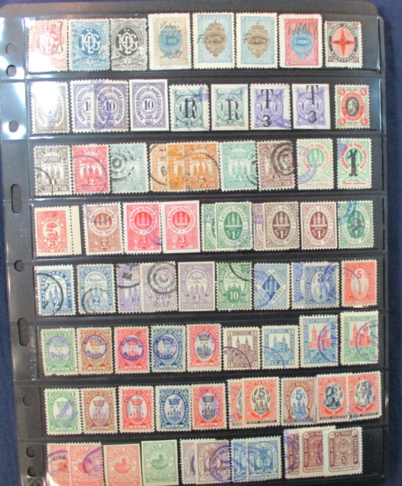 Danish Revenues and More - Collection of 625+ Danish revenues, telegraph/telephone, railway parcel post, and other mostly unlisted stamps all neatly lined up on black stockpages. Clean lot, with minimal duplication for shade and cancel varieties. Take a look! (Est $200-300) (Image)