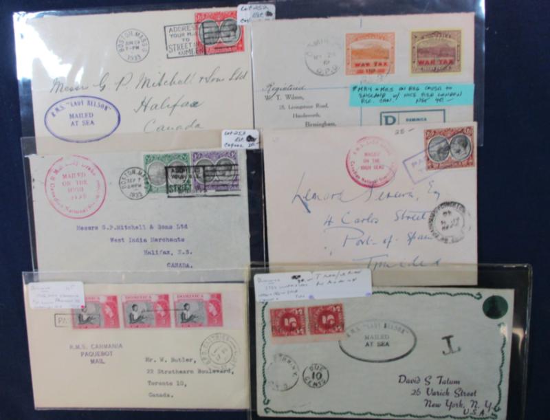 Dominica Cover Group, 1900-1960s - Group of 45 covers/cards. A nice group with great depth highlighted by War Tax, Pacquetbot, censored, registered, etc. Excellent group for the cover dealer. (Est $300-400) (Image)
