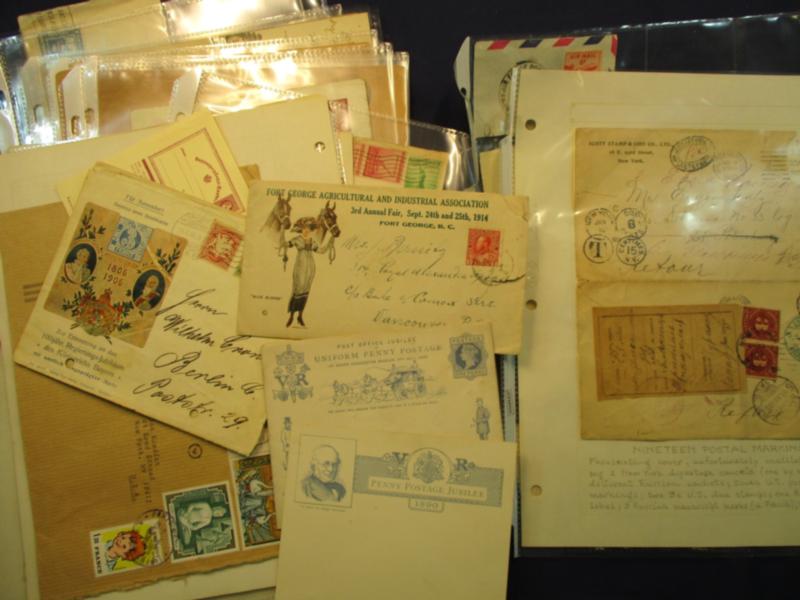 (Mostly) France Covers/Cards, Early to WWII - A tin and folder holding over 120 covers and cards with a mix of early to WWII with 10c Sower issue, parcel post card, picture postcards, postal stationery, plus several non-France items that come along for the ride, like some German Feldpost, APO PPCs, Canada, etc. Take a look! (Est $150-200). (Image)