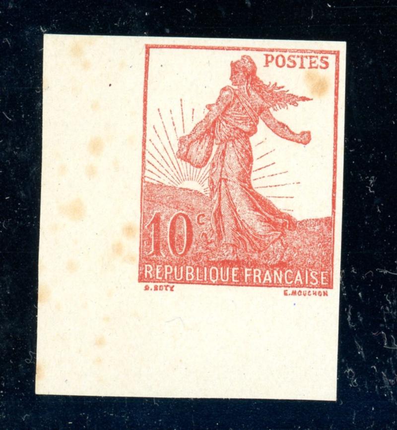 France Essay - Sower on Land with Sunrise - Lower left corner margin copy. Several tone spots, otherwise fine. (Maury €225) (Image)