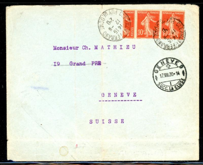 France Cover with Sower Issue Multiple/Bisect to Switzerland - Interesting usage with bisect to pay 25¢ rate to Switzerland with front receiving cancel. Several cover folds not affecting stamps and some soiling/foxing. (Est $90-120) (Image)