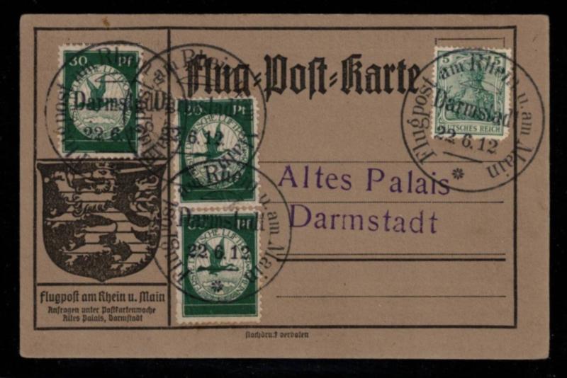 Germany Scott CL3 30pf (x3) on Card, 1912 Darmstadt Cancel - Excellent condition. Good cancel strikes. SCV $300 for single on cover. Nice card! (Est $175-200) (Image)