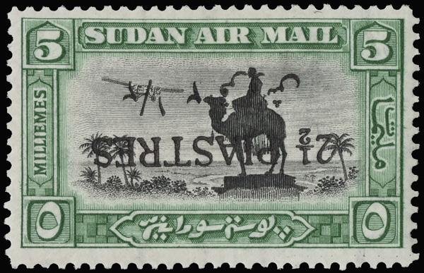 Airmail, 1935, 2½p on 5m, surcharge inverted (Scott C19c), o.g., very lightly hinged, fresh and well centered; with penciled position "29" on the reverse, with a 1986 R.P.S.L. certificate. SG 70c; £1,000 ($1,270). Scott $1,250. (Image)