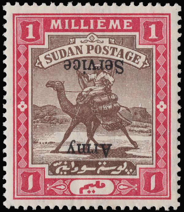 1906, "Army Service" on 1m brown & carmine (Scott MO5b), o.g., barely hinged, exceptionally fresh and mathematically centered, Extremely Fine and rare, with a 1919 letter of authenticity from W.T. Wilson of Birmingham England, noting that only 120 were issued. SG A6b; £800 ($1,020). Scott $650. (Image)