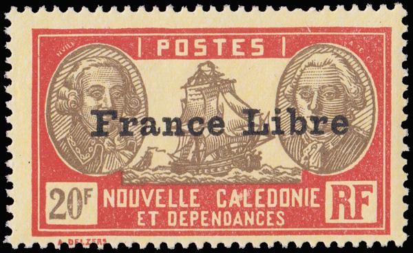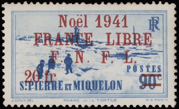1941 "Noël/France Libre" overprints in carmine complete (Scott 260-279), a bright, fresh set, o.g., very lightly hinged, Very Fine. Yvert 212A-231A. Maury 212-231. Scott $1,175. (Image)