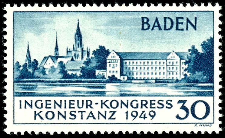 30 pfennigs European Engineering Congress in Constance, type II (2nd issue), mint never hinged, very fine, expertized Dr. Dub and photo expertize Hans Dieter Schlegel BPP \the quality is perfect. \, Michel 650.- (46II) Certificate 30 Pfennig Europäischer Ingenieurskongress in Konstanz, Type II (2. Auflage), postfrisch, tadellose Erhaltung, geprüft Dr. Dub und Fotoattest Hans-Dieter Schlegel BPP \Die Qualität ist einwandfrei.\, Mi. 650.- (Image)