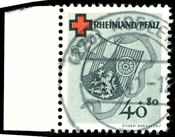 10 to 40 pfennigs, German Red Cross, 1949, used, sound, expertized Schlegel BPP, Michel 480.- (40A/43) 10 bis 40 Pfennig, Deutsches Rotes Kreuz, 1949, gestempelt, tadellos, geprüft Schlegel BPP, Mi. 480.- (Image)