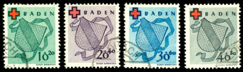 10 to 40 Pfennig, German Red Cross, 1949, used, fine, certified by Schlegel BPP, Michel 440. (42A/45) 10 bis 40 Pfennig, Deutsches Rotes Kreuz, 1949, gestempelt, tadellos, geprüft Schlegel BPP, Mi. 440.- (Image)