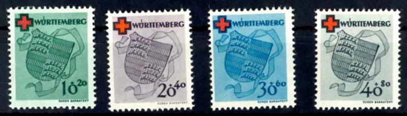 10 - 40 Pfennig Red Cross, mint complete, Michel 160.- (40/43A) 10 - 40 Pfg. Rotes Kreuz, postfrisch komplett, Mi. 160.- (Image)