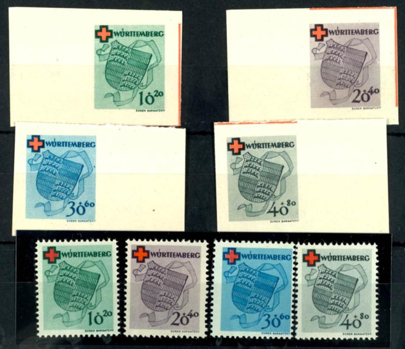 10 to 40 Pfg, Red Cross, each perforated and cut, mint never hinged, or mint, no gum, Michel 280.- (40/43A/B) 10 bis 40 Pfg, Rotes Kreuz, je gezähnt und geschnitten, postfrisch, bzw. ungebraucht o.G., Mi. 280.- (Image)