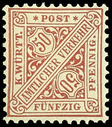 50 Pfennig, service stamp, \Official Traffic 2\, issue 1890, vivid reddish-brown, flawless condition, mint never hinged, examined by Hederer, photo certificate Hartmut Winkler BPP (2007): \genuine and flawless\, Michel 500,- (211) Certificate 50 Pfennig, Dienstmarke, \Amtlicher Verkehr 2\, Ausgabe 1890, lebhaftbraunrot, tadellose Erhaltung, postfrisch, geprüft Hederer, Fotoattest Hartmut Winkler BPP (2007): \echt und einwandfrei\, Mi. 500,- (Image)