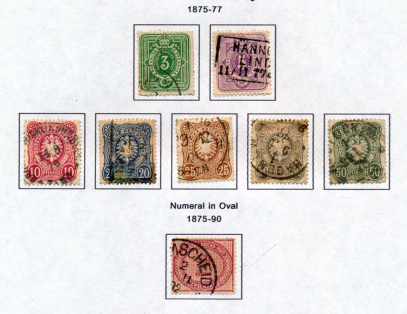 GERMANY 1875-1949 COLLECTION STAMPS F-VF */**/O. 2 Kabe hingeless albums containing 625 stamps mint and used. Must be examined. I noted #14NB16**. Scott $1490.00 CAD. (Image1)